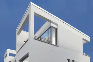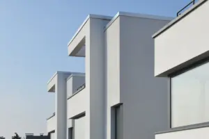 Zur Unterbringung der üblichen Größe von ca.150 m2 Wohnfläche werden die Einzelhäuser dreigeschossig ausgebildet. Die gewählte kubische Bauform lässt viele Möglichkeiten der Ausführung zu. Es entstehen Vor- und Rücksprünge, Terrassen mit und ohne Überdeckung. Die quase freistehenden Häusern lassen bzgl. der Fenstergestaltung keine Wünsche offen. Die großen Übereckfenster schaffen einen großzügigen Eindruck innerhalb der Räume und sorgen für eine optimale Belichtung. Die Innenausstattung in gehobenen Standard folgt dem äußeren Anspruch der Häuser. Fußbodenheizung, Vollparkettböden, hochwertige Sanitärobjekte; ein Kaminzug für den Anschluss eines Kaminofens ist vorhanden. Die energetische Ausstattung mit Wärmepumpe und Solarpanels ergänzt sinnvoll die technische Ausstattung.