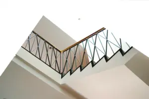 Erschließung vom Eingang über die zentrale dreigeschossige Halle mit freitragender Treppe, die die drei Ebenen auf angenehme Weise verbindet; nach unten in die Haupt-Wohnräume und nach oben in die Schlafräume und auf der Eingangsebene zu ergänzenden Aufenthaltsräumen; Terrassen zum Garten auf im Sockelgeschoss und Balkon auf der Eingangsebene.